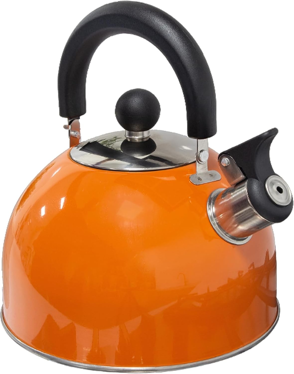 Prima 2.5L Red Lightweight Stainless Steel Whistling Kettle Camping Fishing Cordless