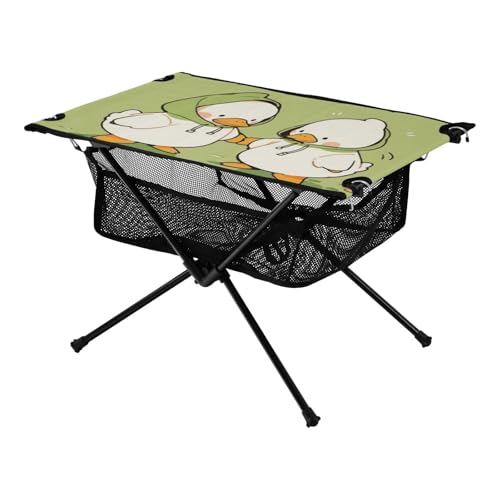 Foldable Outdoor Table Cute Cartoon White Daze Duck Rectangle Camping Side Table with Storage Bag for Outdoor Kitchen Picnic