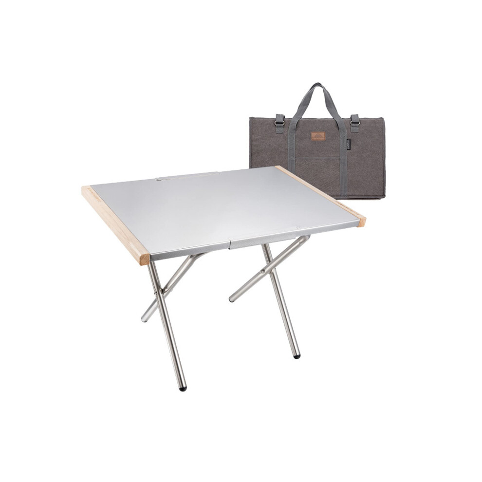 CAMPINGMOON Camping Side Table Heat-Resisting Stainless Steel Embossing Process for Outdoor Table Top Grill with Carrying Bag T-370