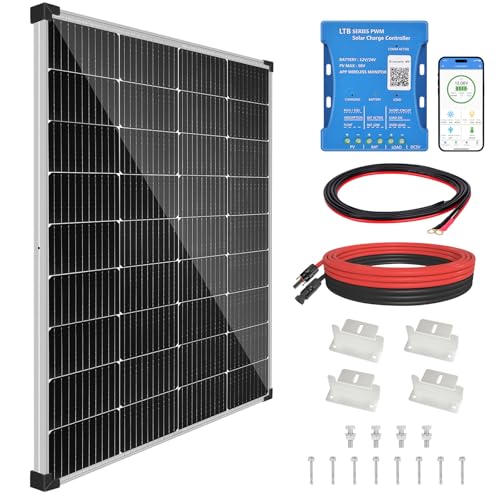 【180W Bluetooth Solar Panel Kit】DERUXI 180 W Solar Panel Set: 180W 12V Monocrystalline Solar Panels+20A Bluetooth Solar Charge Controller+4Pcs Solar Cable+Z-Bracket PV for Caravan Camping RV Boat Roof