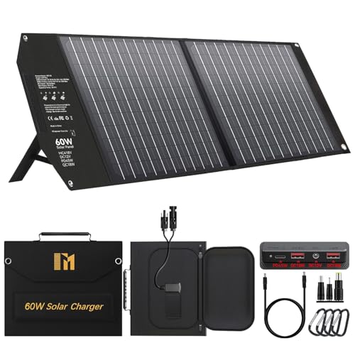 Mesuvida 60W Portable Solar Panels with PD3.0 PD45W USB-C QC3.0 USB-A 18V DC MC4 Outputs Foldable Solar Panel for Camping RV Trip Fast Charging for Small Power Station Generator Cell Phone Power Bank