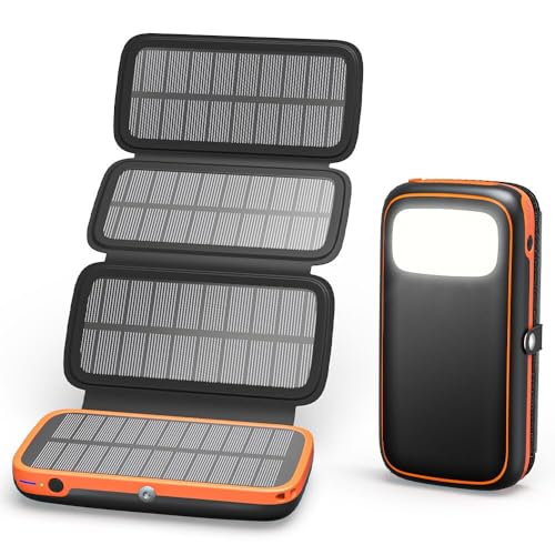 Paloceru Solar Power Bank 26800mAh - Portable Solar Charger with 4 Foldable Panels – PD QC 3.0 Fast Charging Battery Bank with USB C Output/Input - Outdoor Battery Pack with Flashlight for Camping