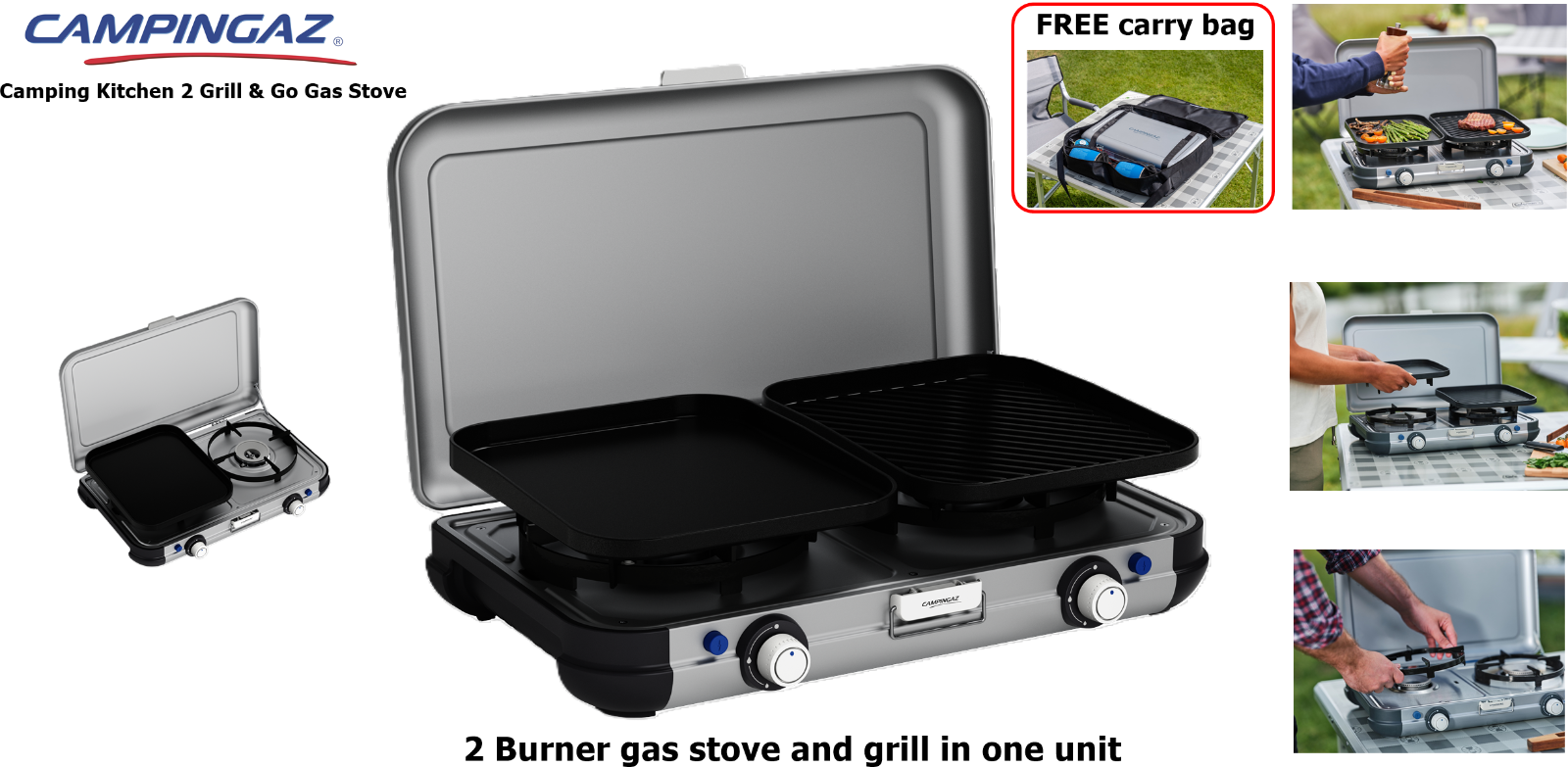 Campingaz Camping Kitchen 2 Grill & Go Outdoor Cooking Gas Stove