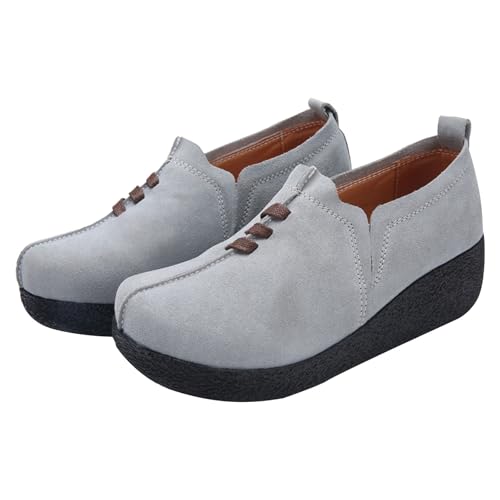 Wedge Shoes Slip On for Women Shoes Rocker Soles Lightweight Platform Shoe Suede Loafers Shoe Comfortable Tennis Sneakers Orthopedic Trainers Walking Sneaker Suitable for Campus and Shopping Grey