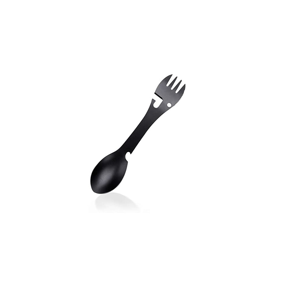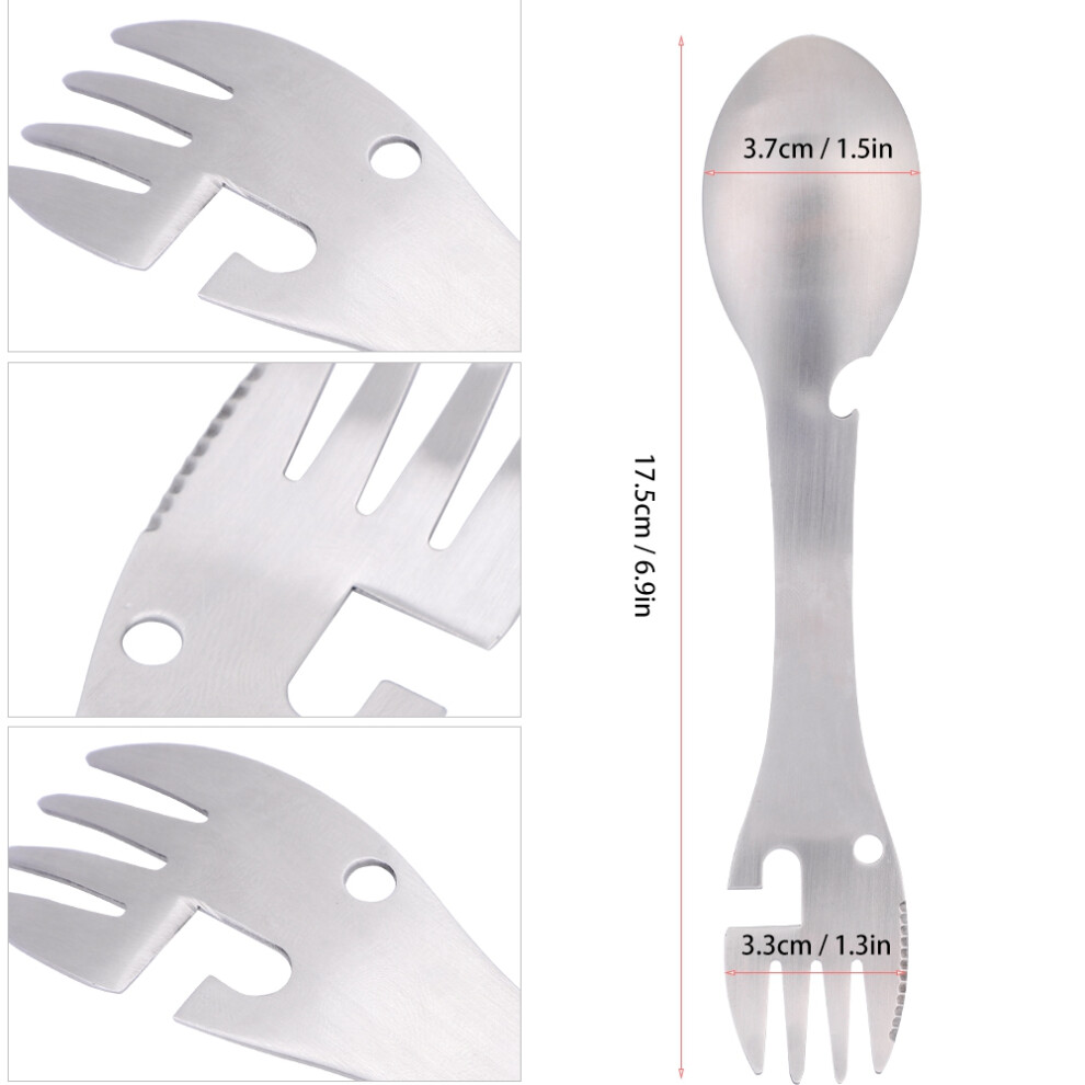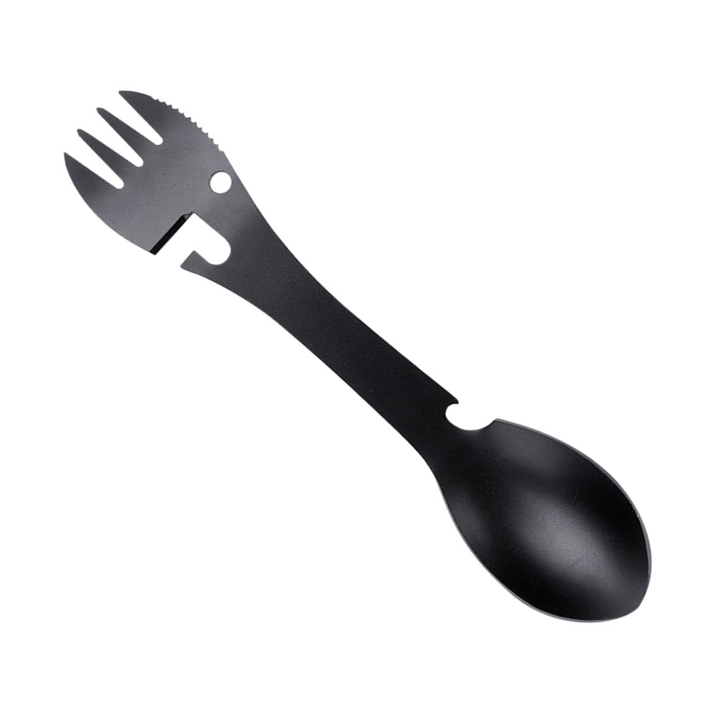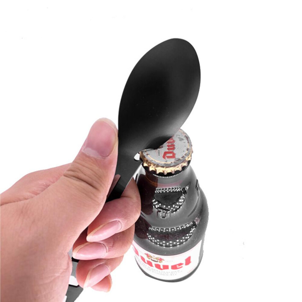 Outdoor Spoon Fork Multitool, 5 in 1 Portable Multi-function Spoon Fork Bottle Can Opener Sawtooth Cutter for Camping Picnic