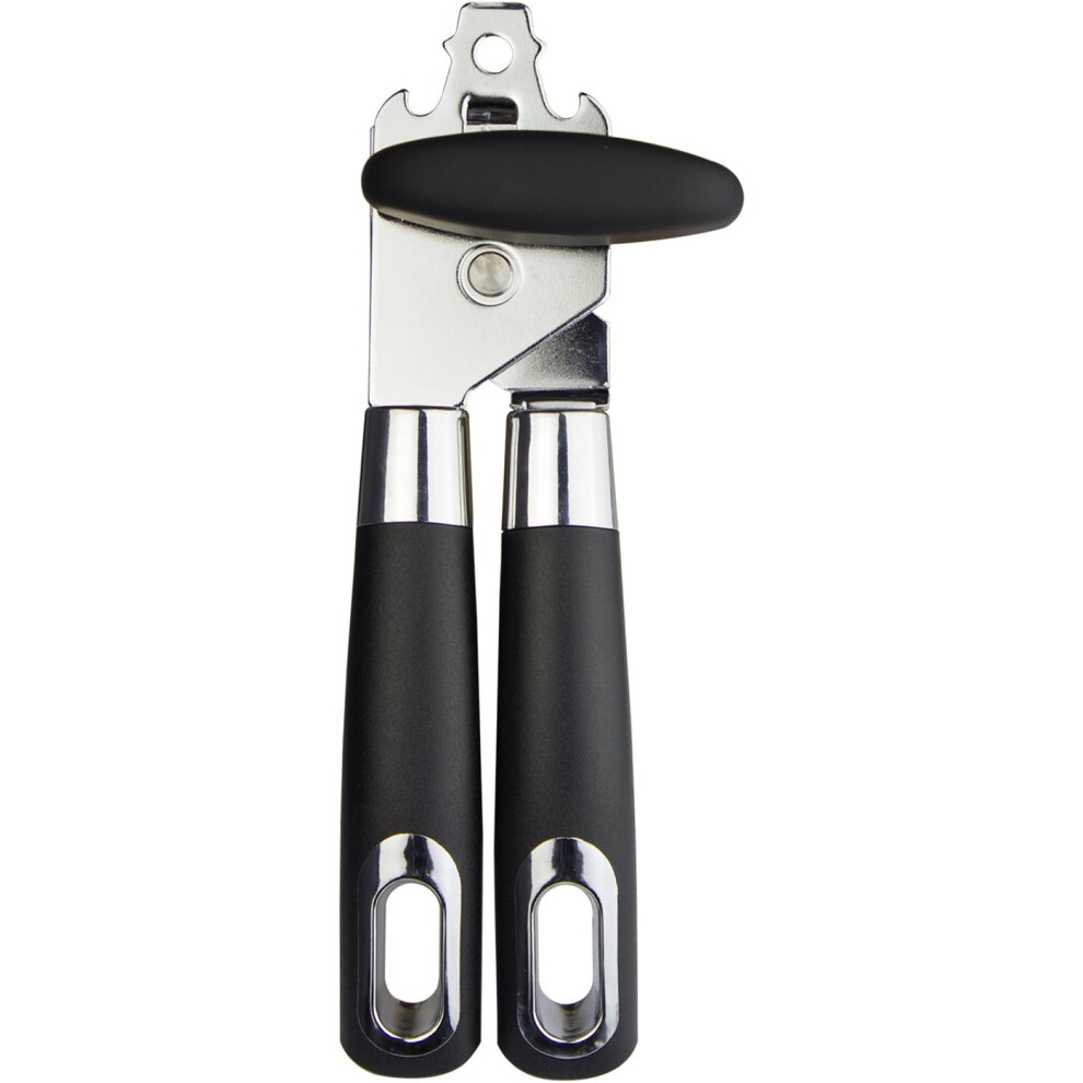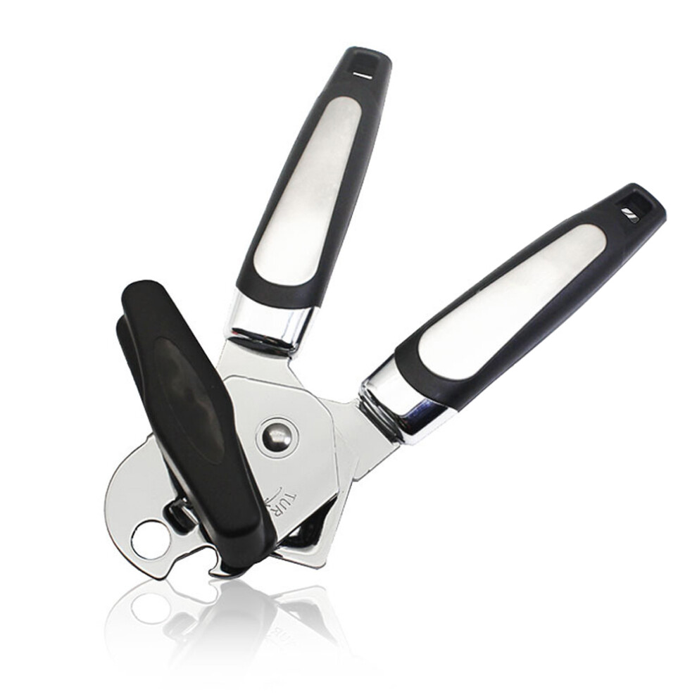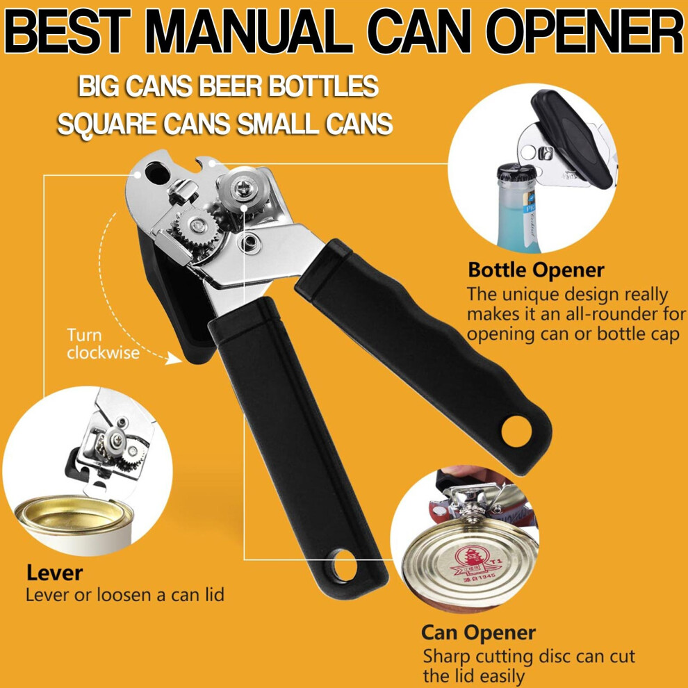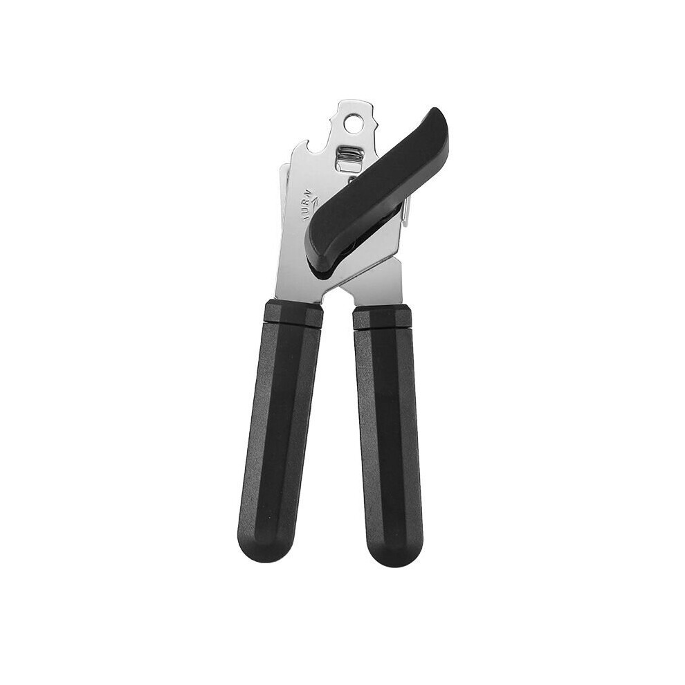 (Black) Heavy Duty Stainless Steel Tin Can Opener Cutter Easy Comfy Handle Grip Kitchen