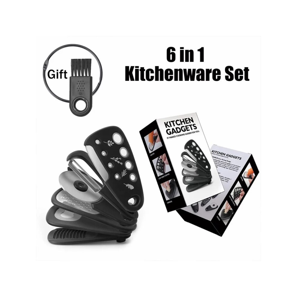 6-in-1 Roller Pizza Cutter Can Opener Garlic Masher Peeler Kitchen Gadget Set (BPA Free,No FDA)