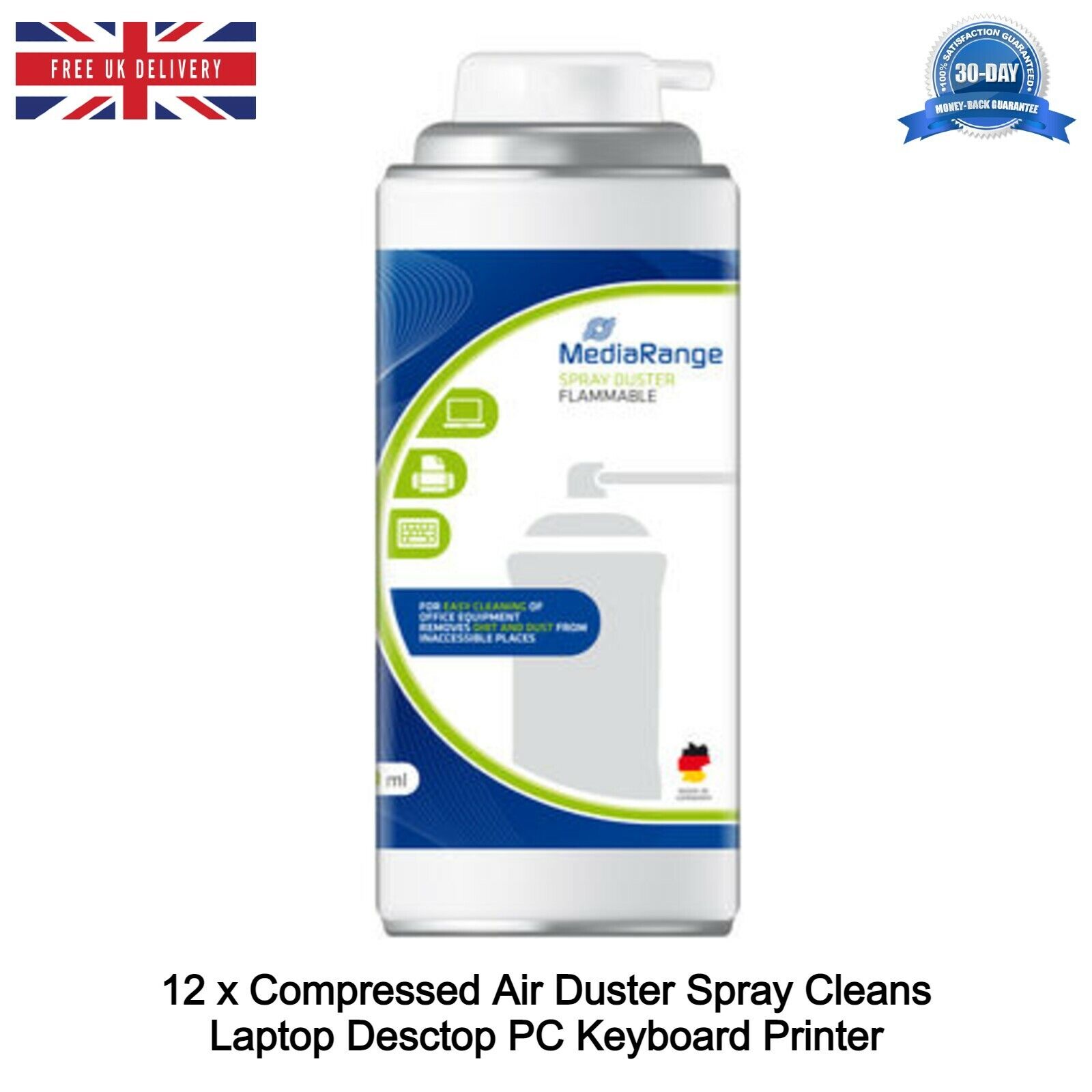 12 x Compressed Air Duster 400ml Multi purpose Cleaner Spray Can Laptop Keyboard