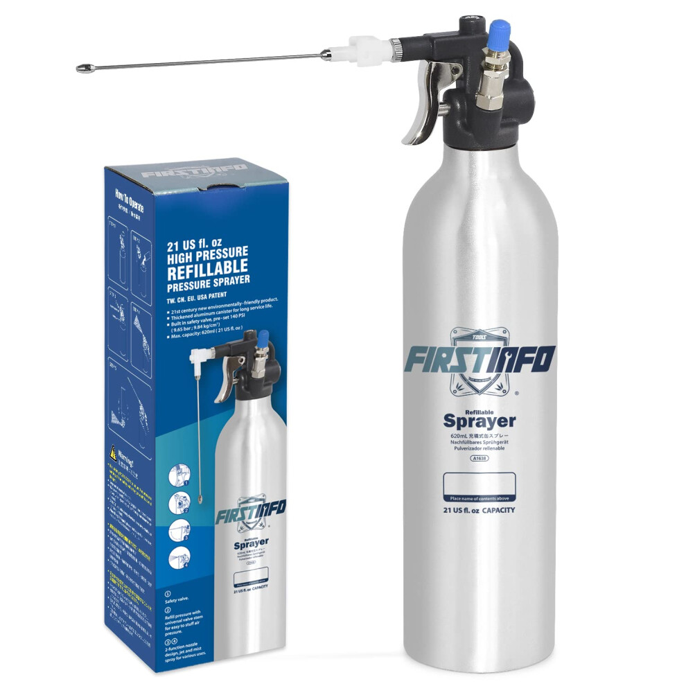 FIRSTINFO A1638 (3rd Gen) Patented Lightweight Max. Pressure 140psi / 620ml Thickened Aluminum Canister Refillable Aerosol Spray Can | Compressed Air
