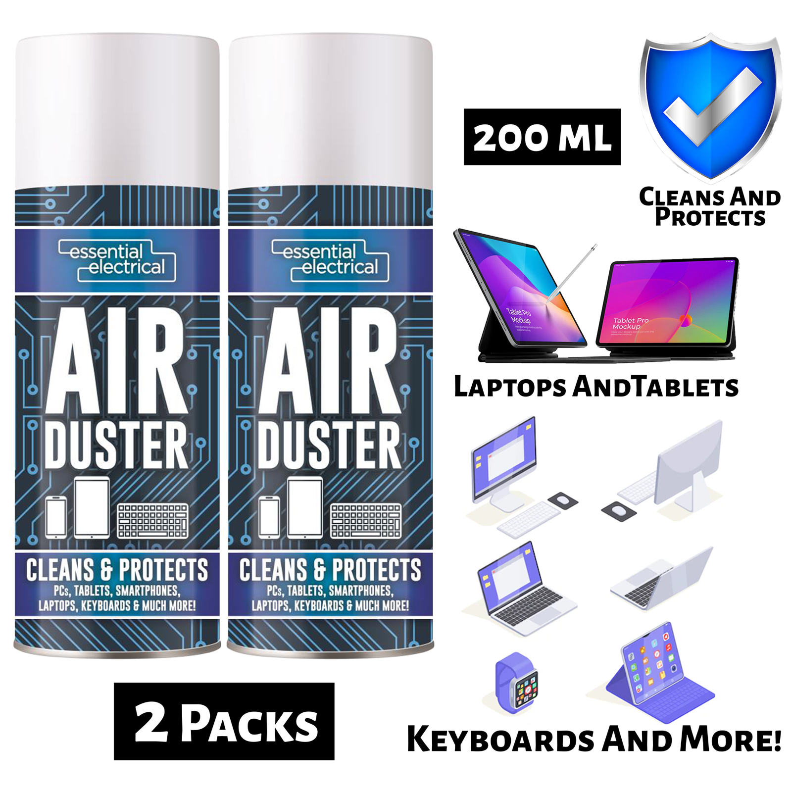 2 x Compressed Air Duster Spray Can Cleans & Protects Laptops Keyboards... 200ml