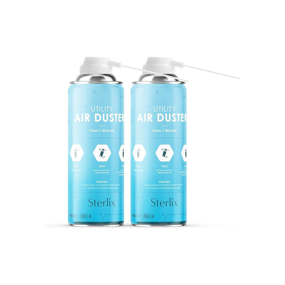 Sterlix Air Duster Can Compressed Air Spray Can Dust Cleaner PC, Keyboard, Electronic Devices & Car Cleaning Protect, 2 x 400ml, Packaging May Vary