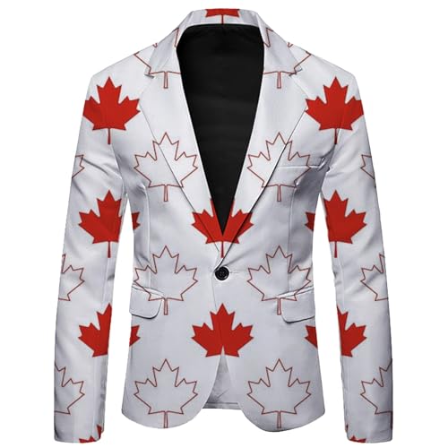 Blazer For Men Casual,Male Canada Day Long Sleeve Coat Suit Printed Button And Pockets Suit For Holiday Party Events (Red, S)