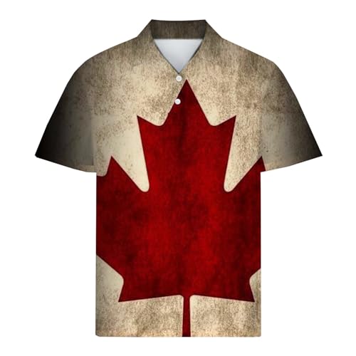 Mens Short Sleeve Shirt - Canadian Maple Leaf Shirt For Men Canada Day Flag T-Shirt 3D Printing Cool Short Sleeve Shirt Unisex (White S)