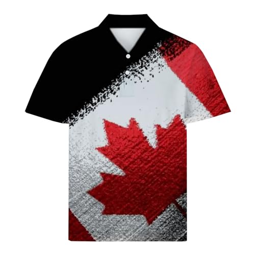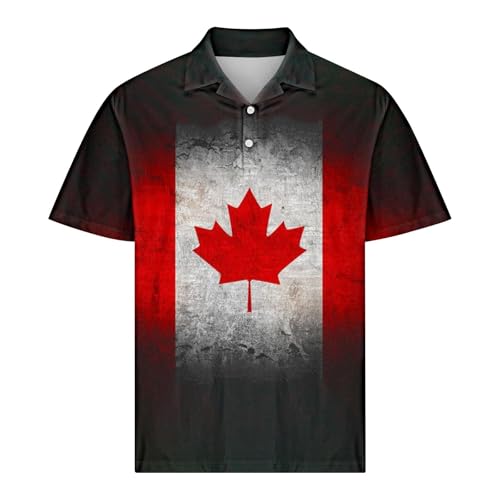 Mens Polo Shirt - Canadian Maple Leaf Shirt For Men Canada Day Flag T-Shirt 3D Printing Cool Short Sleeve Shirt Unisex (Black S)