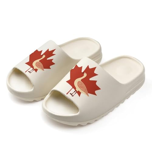 Goose in The Middle of Canada Flag Slides for Women Men Soft Thick Bottom Coconut Slippers Sandals for Bathroom Beach