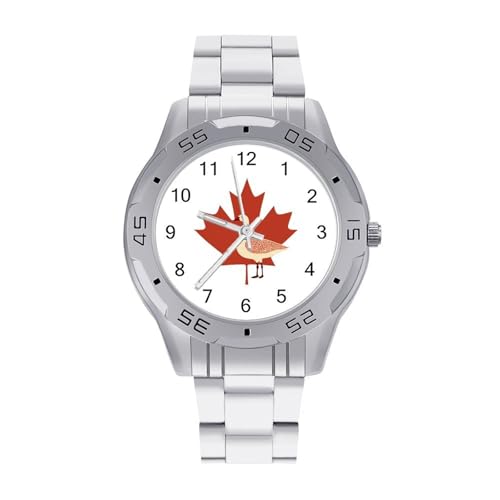 Goose in The Middle of Canada Flag Men's Wrist Watches Business Watch Classic Vintage Stainless Steel Band for Boyfriend Father