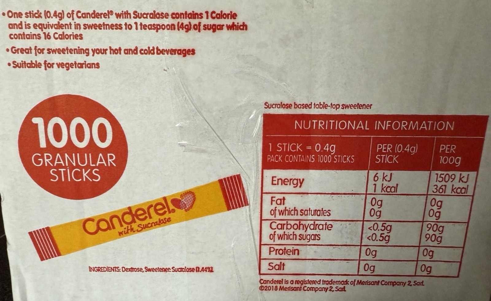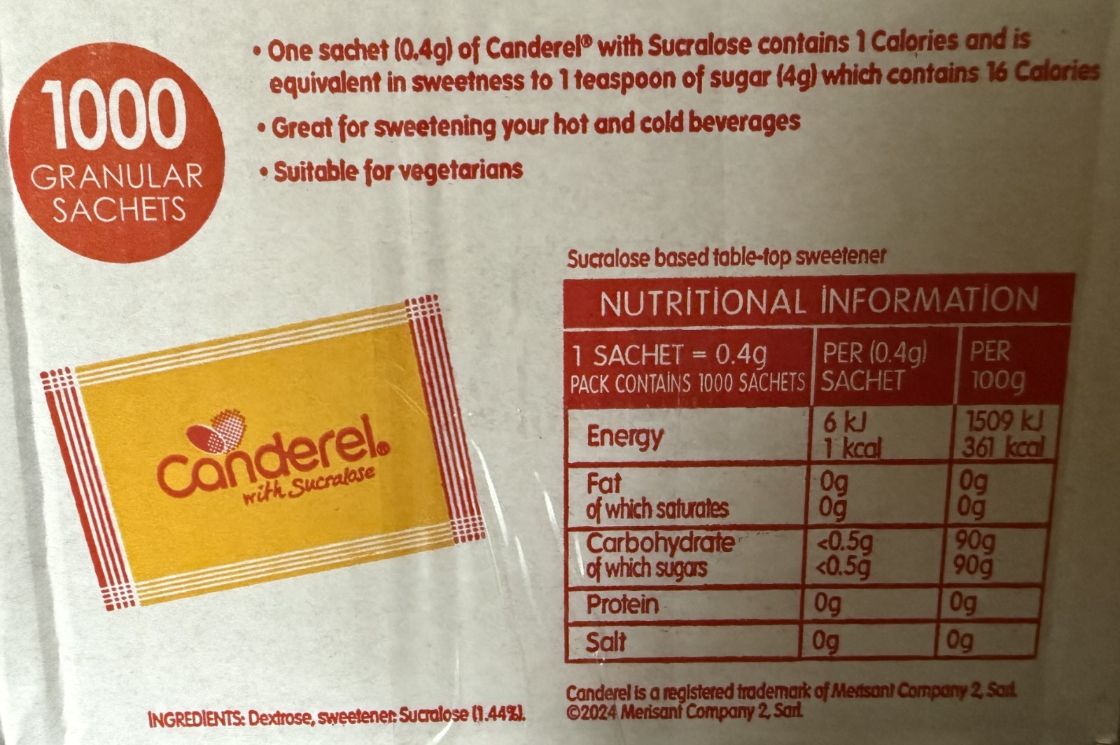 Canderel Sweetener Sachets With Sucralose - Box of 1,000 - BBE May 2027