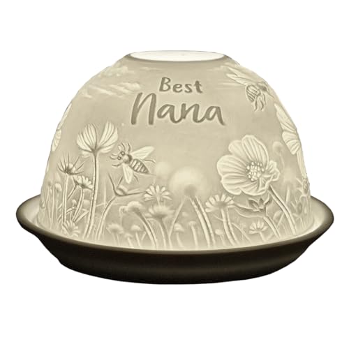Cello Porcelain Tealight Holder Dome - Best Nana Design with 3D Projection Image & Loving Message Scented Unscented LED Candle Wax Warmer Nanny Birthday Gifts Ornament Bedroom Home Present