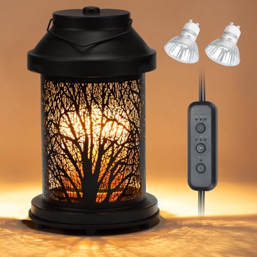 Metal Wax Melt Burner Oil Burner Plug in, Electric Candle Wax Warmer Melter Essential Oil Fragrance Burner, Night Light Aroma Lamp For Home Office Bedroom Gifts & Decor (Black-Tree)