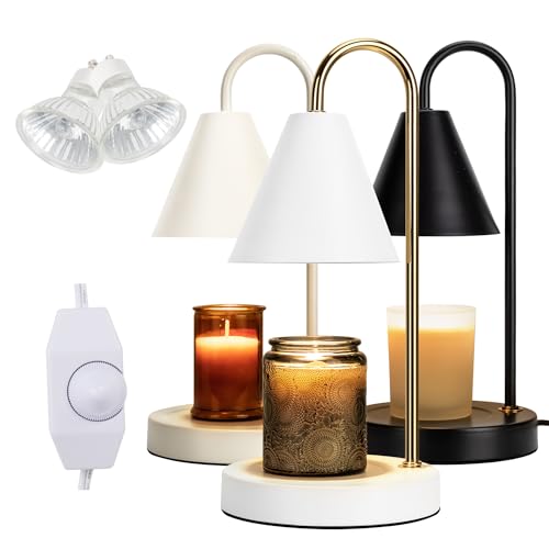 Candeldo Candle Warmer Lamp with Timer: Candle Warmers with 2 Bulbs Height Adjustable Dimmable Wax Melt House Warming Gifts New Home Bedroom Modern Decor Gift for Women
