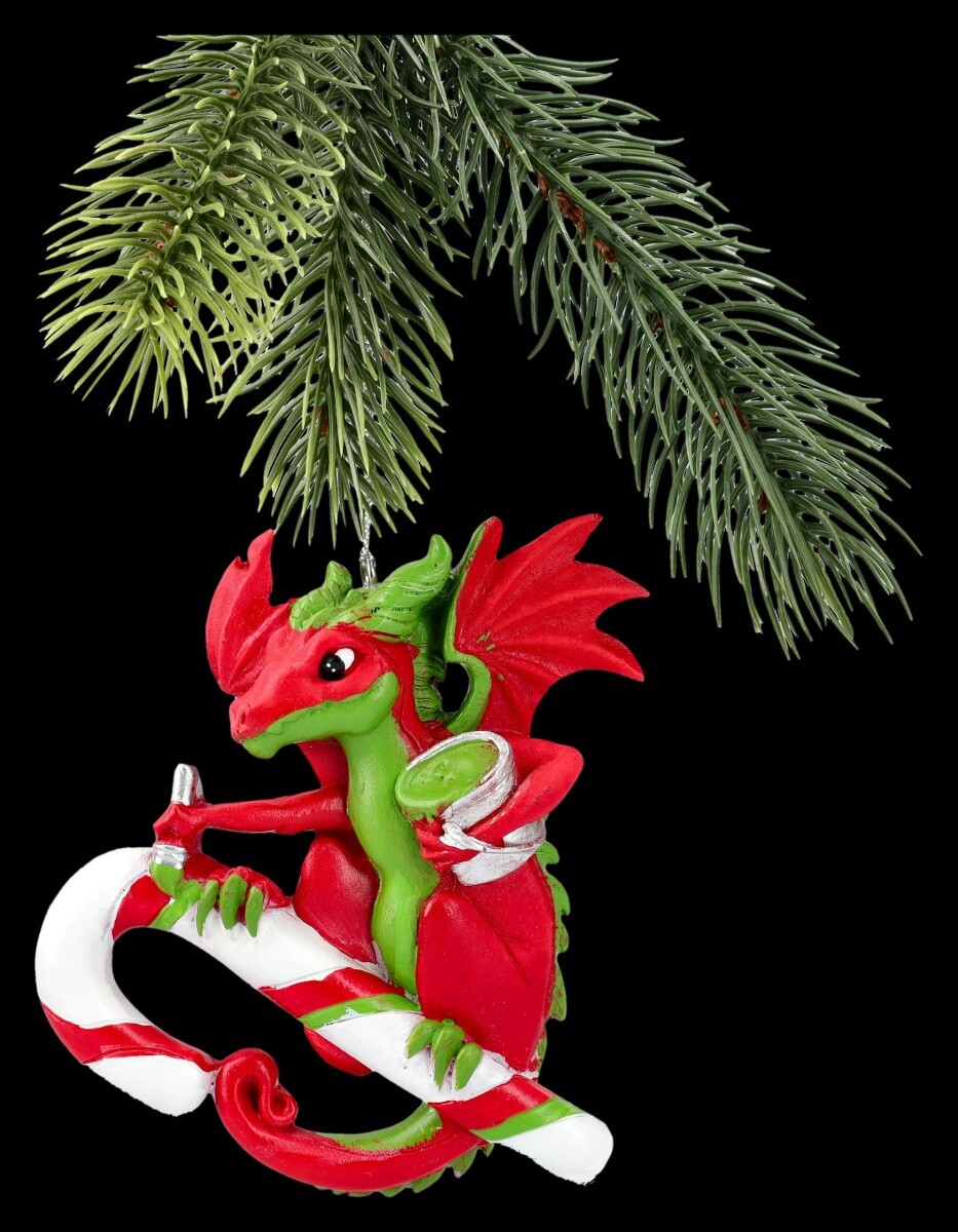 Dragon On Candy Cane Christmas Tree Bauble Ruth Thompsons