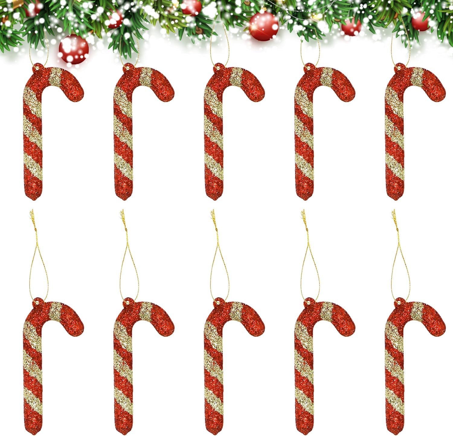 10PCS Christmas Glitter Candy Cane, Xmas Tree Plastic Candy Canes Christmas Tree