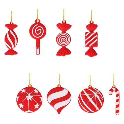 Rumyve 8pcs Candy Cane Lollipop Christmas Tree Decorations,Christmas Hanging Ornament,Tree Ornament for Xmas Holiday Party (Style C)