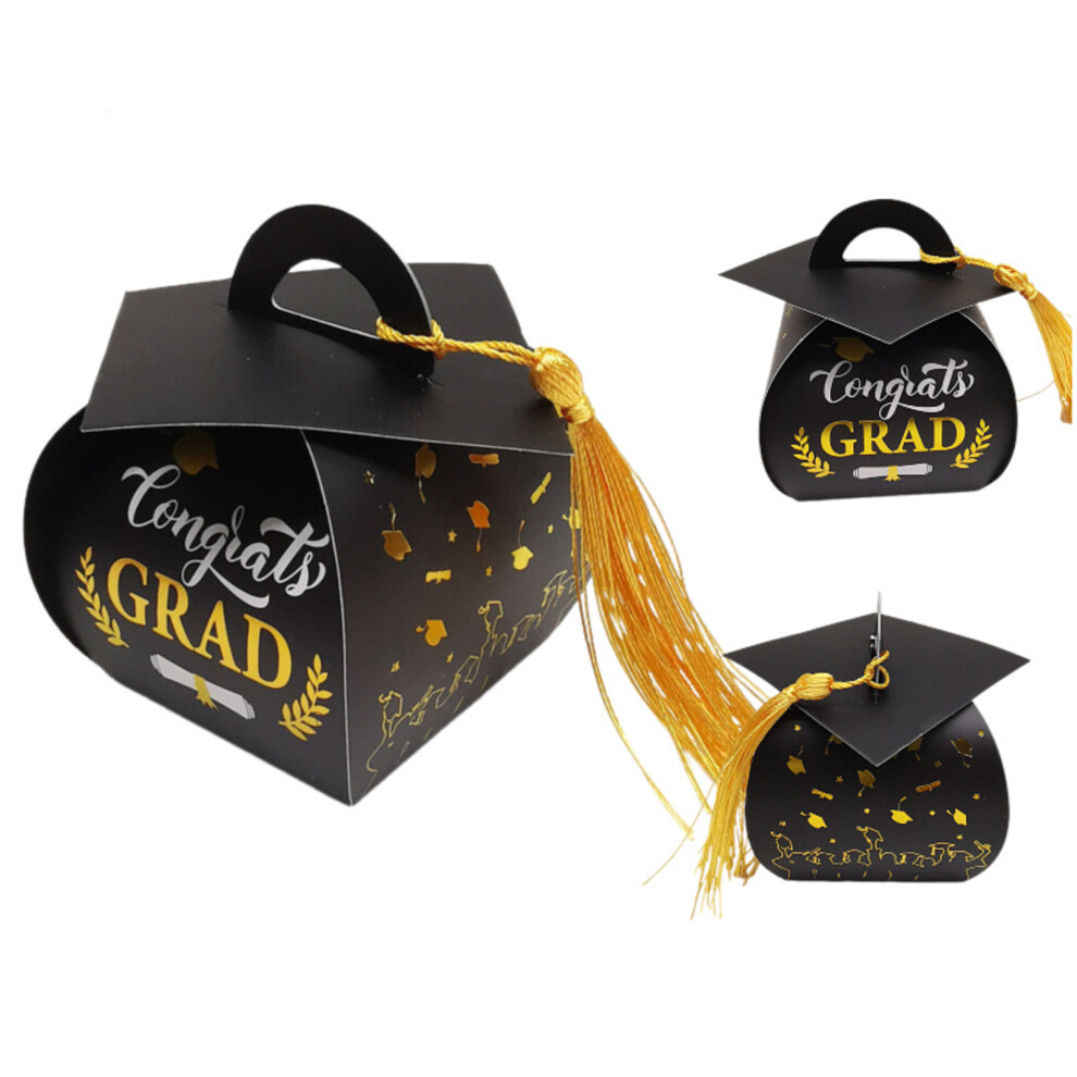 (D, Black) Best Offer 30% Discount 50 Pcs Graduation Cap Gift Box Graduation Party Favors Graduation Candy Box Party Supplies 2025 New