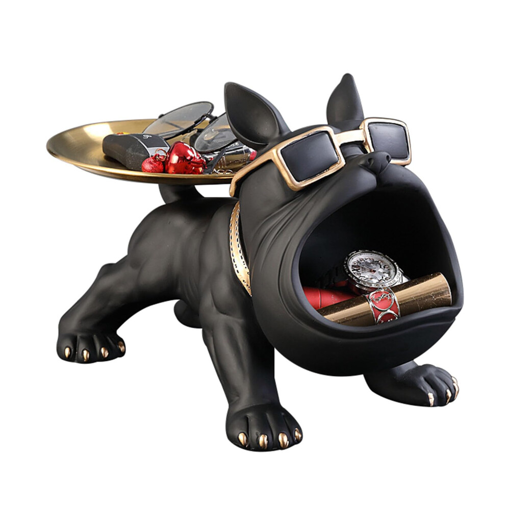 French Bulldog Resin Tray Statue Decorative Bulldog Candy Dish Key Holder Black 30x17x19.5cm
