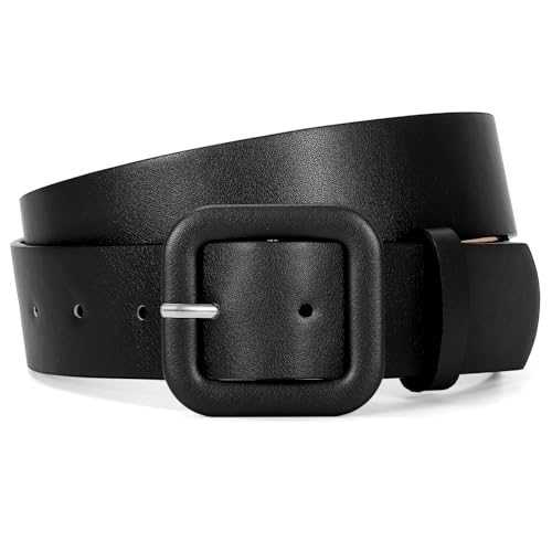 JASGOOD Women’s Leather Belt for Jeans Pants Candy Color Fashion Square Buckle Ladies Belts for Dresses, Black, Fits Waist Size 30"-35"