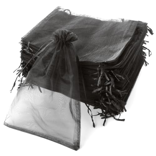 YFZYT 100 PCS Organza Gift Bags 20 x 30 cm Jewelry Pouches Sackli Drawstring large Bag Wedding Mesh Candy Favour Bags for Christmas Party Wedding Birthday Candy Chocolate (Black)