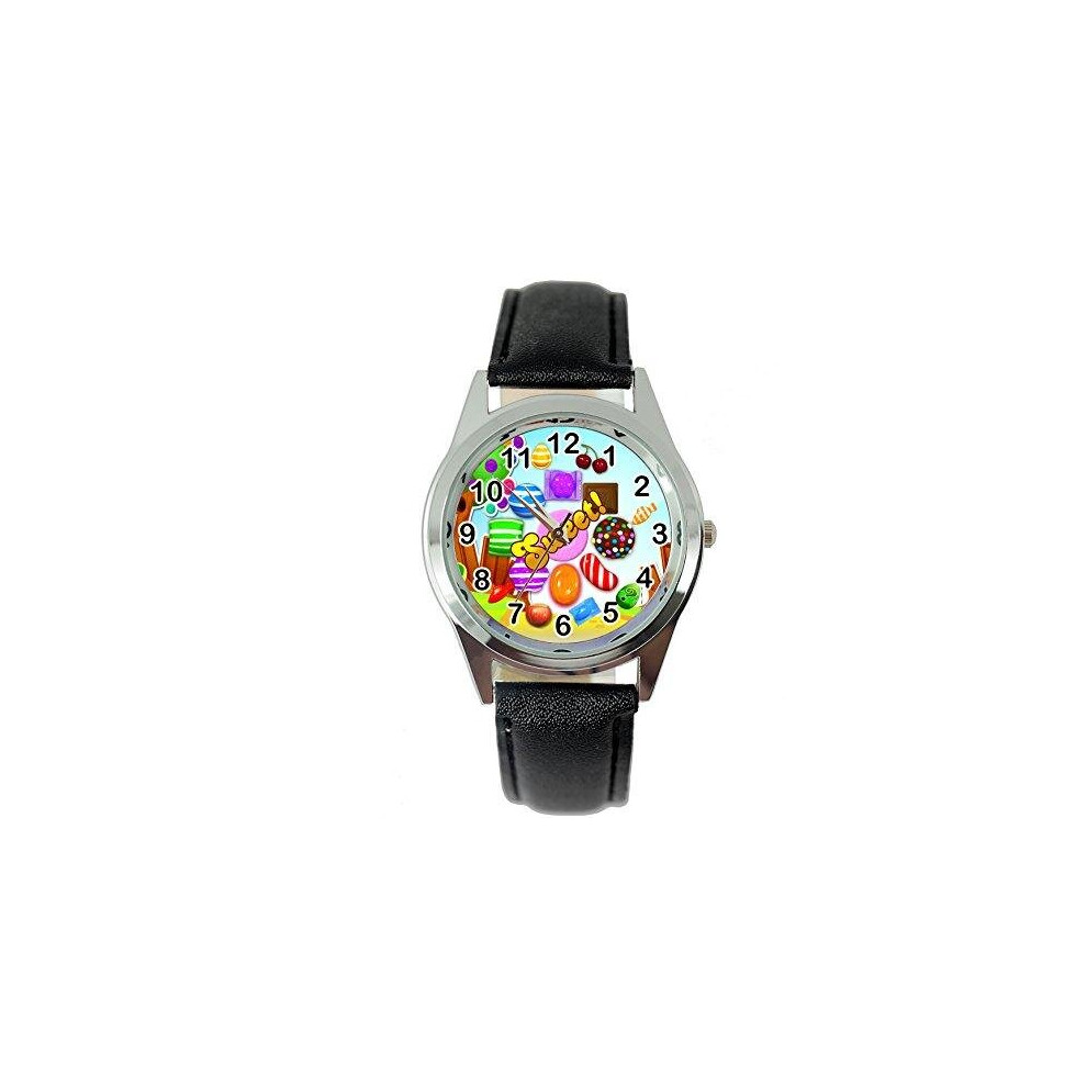 Candy Crush Quartz Watch Leather Band Black