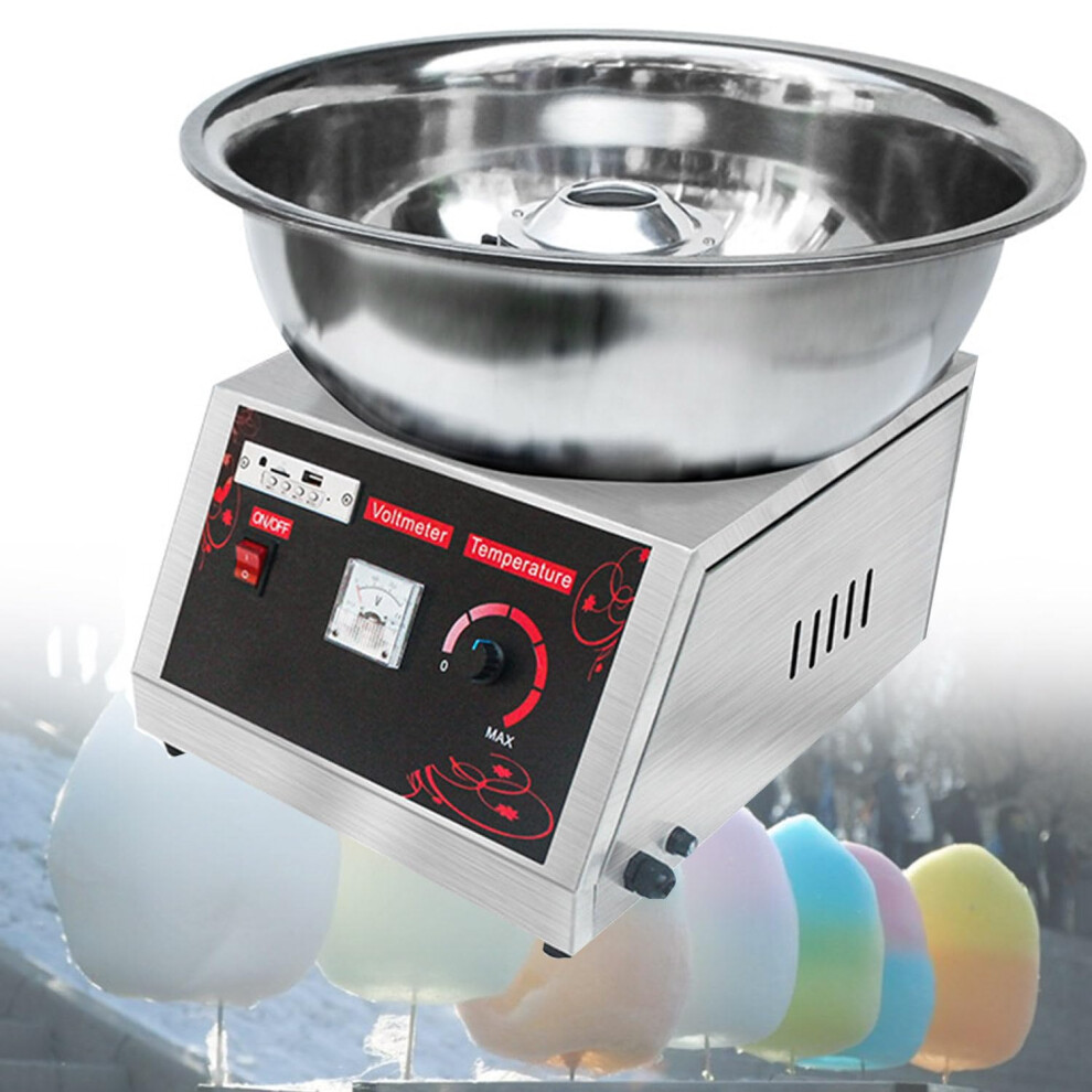 Electric Stainless Steel Candy Floss Maker, Commercial Cotton Candy Machine for Family Parties and Kids Birthdays, 110V