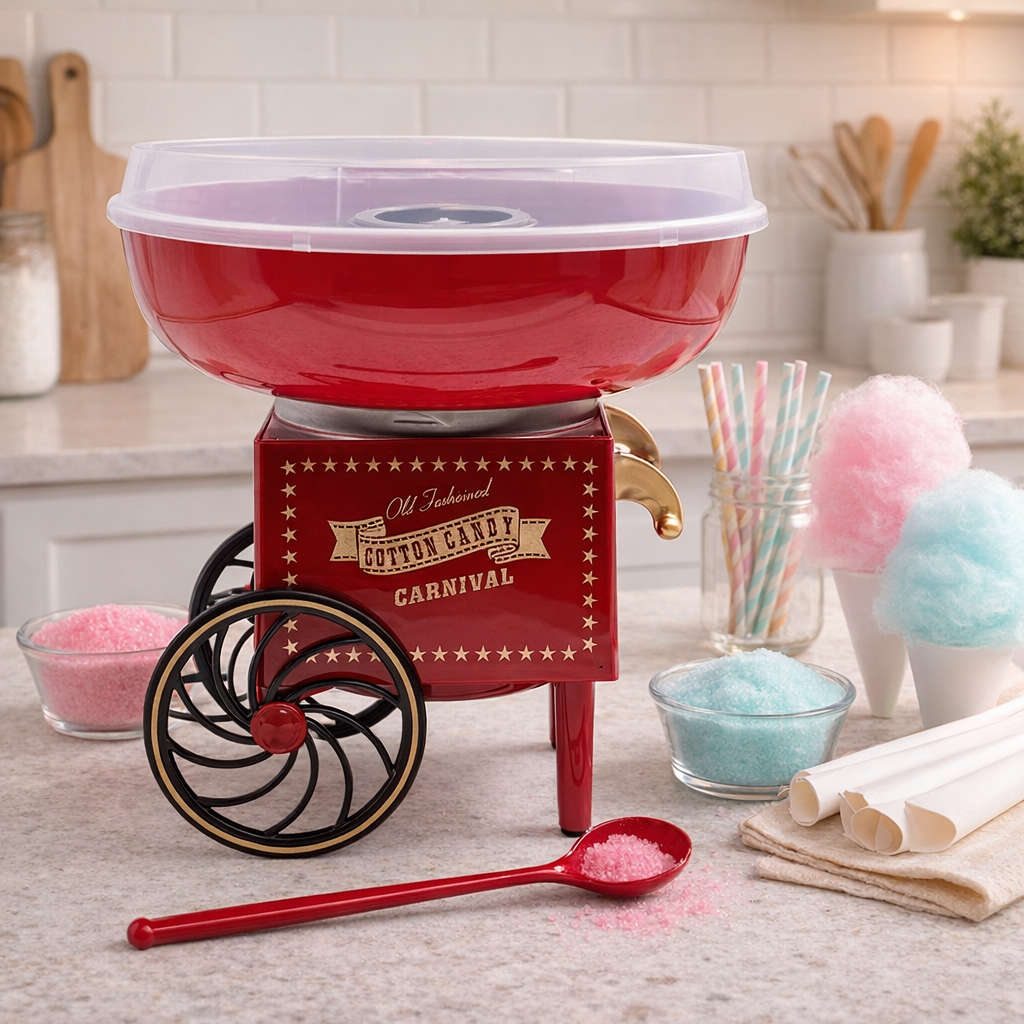 Candy Floss Maker â Cotton Candy Sweet Machine, Retro Carnival Funfair Style Machine for Kids, Parties, Home, Fun Snacks Treat Maker, Portable