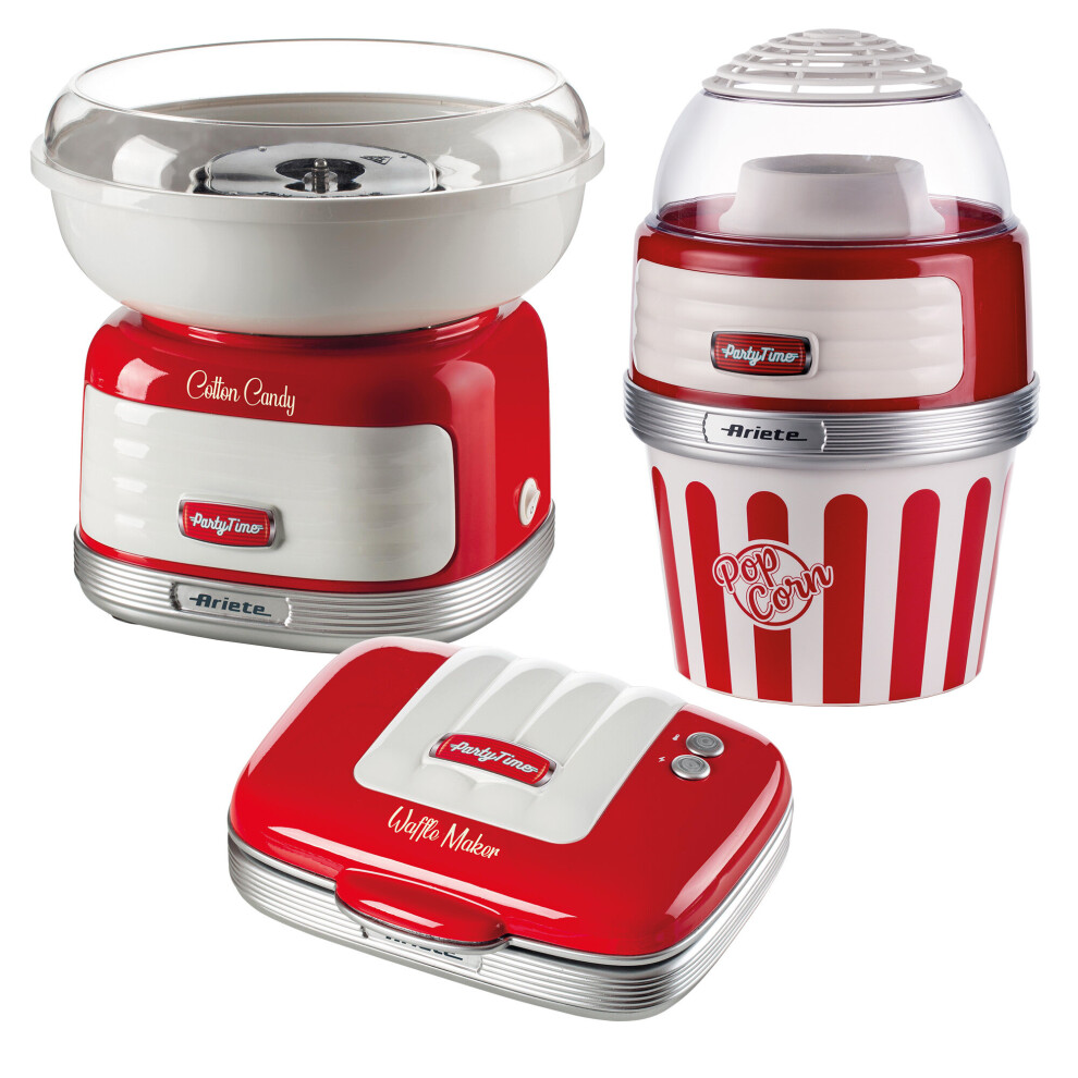 Ariete Retro Style Candy Floss, Popcorn Maker and Waffle Maker Set, Red