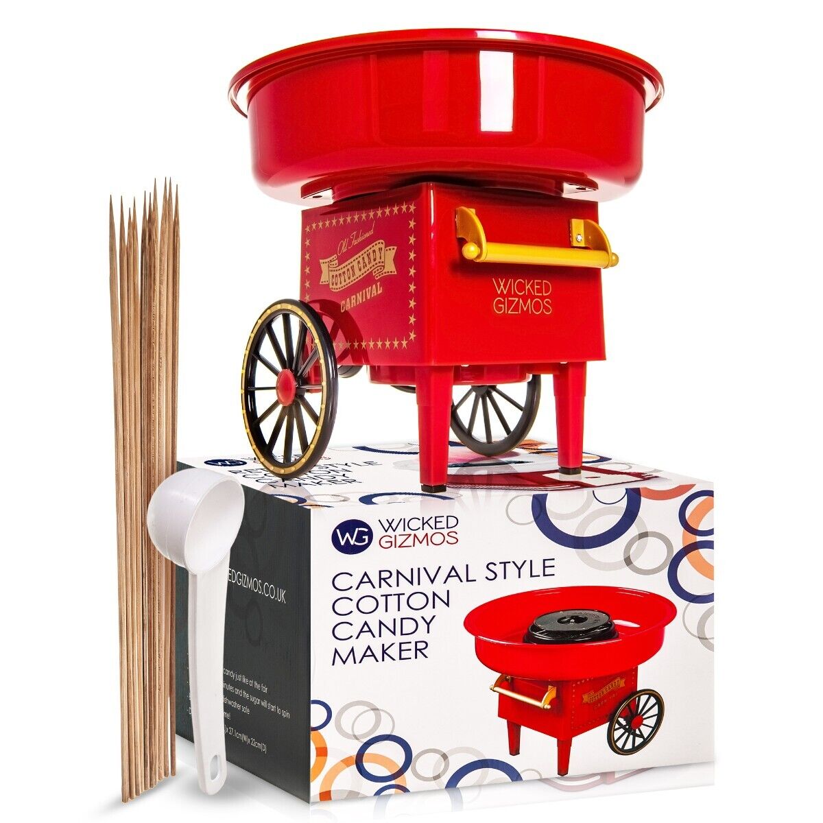 Wicked Gizmos Retro Cotton Candy Floss Maker with Wooden Sticks and Scoop