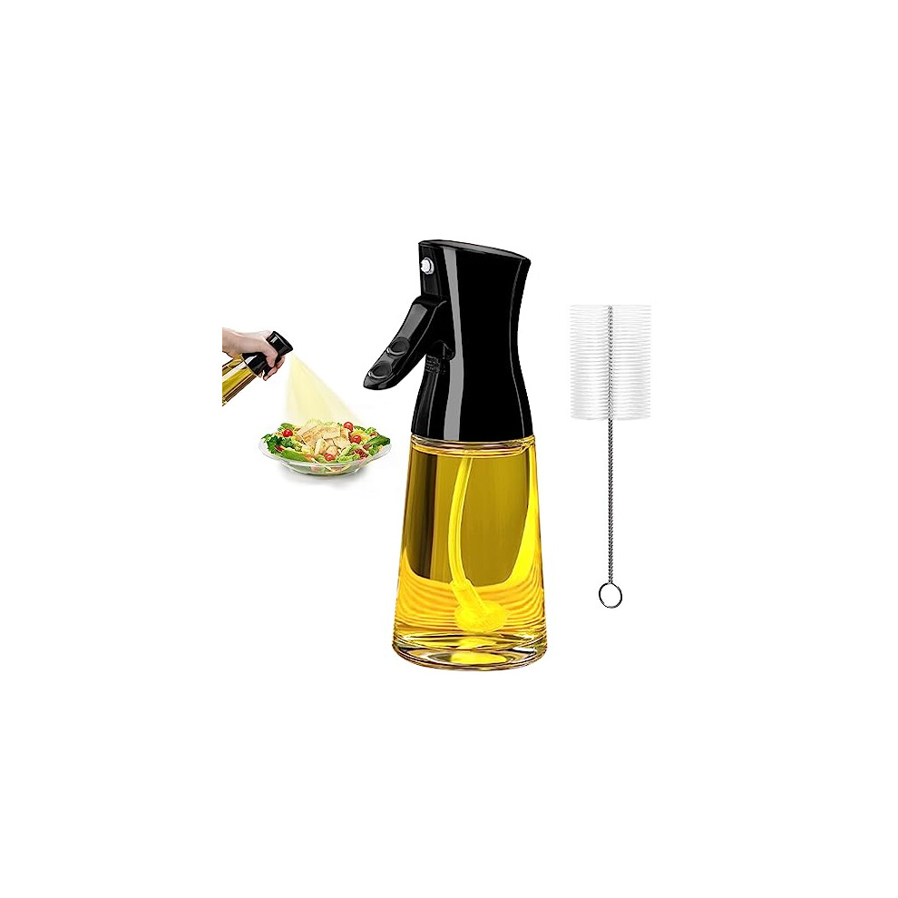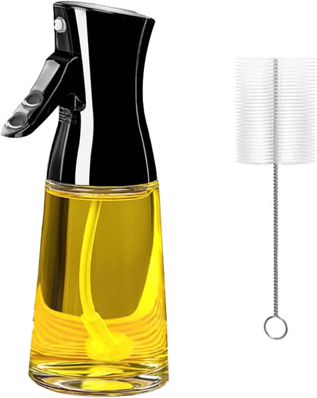 Olive Oil Sprayer for Cooking, 180ML Glass Oil Dispenser Bottle with Brush, Canola Oil Vinegar Spray Mister for Kitchen, Refillable Gadgets