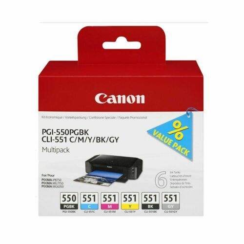 Original Canon PGI-550 BK & CLI-551 (PBK/C/M/Y/GY) 6 Ink Cartridge Multipack