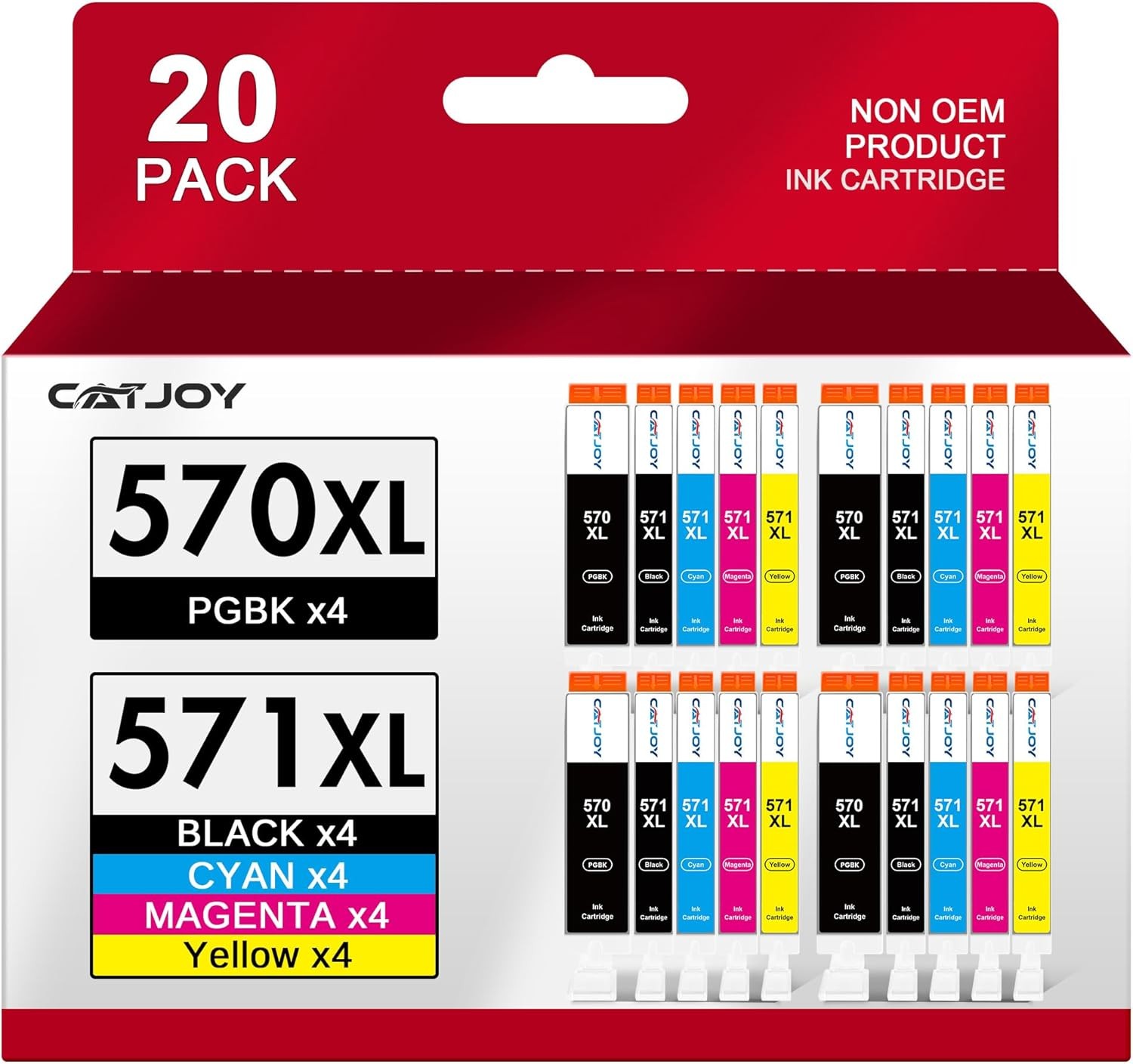 CATJOY 570 571 Ink Cartridges Replacement for Canon 570XL 571XL PGI-570XL CLI-571XL for Canon MG5750 Printer Ink Cartridges for PIXMA MG5700 MG5750 MG5751 MG6850 MG6851 TS5050(20-Pack)