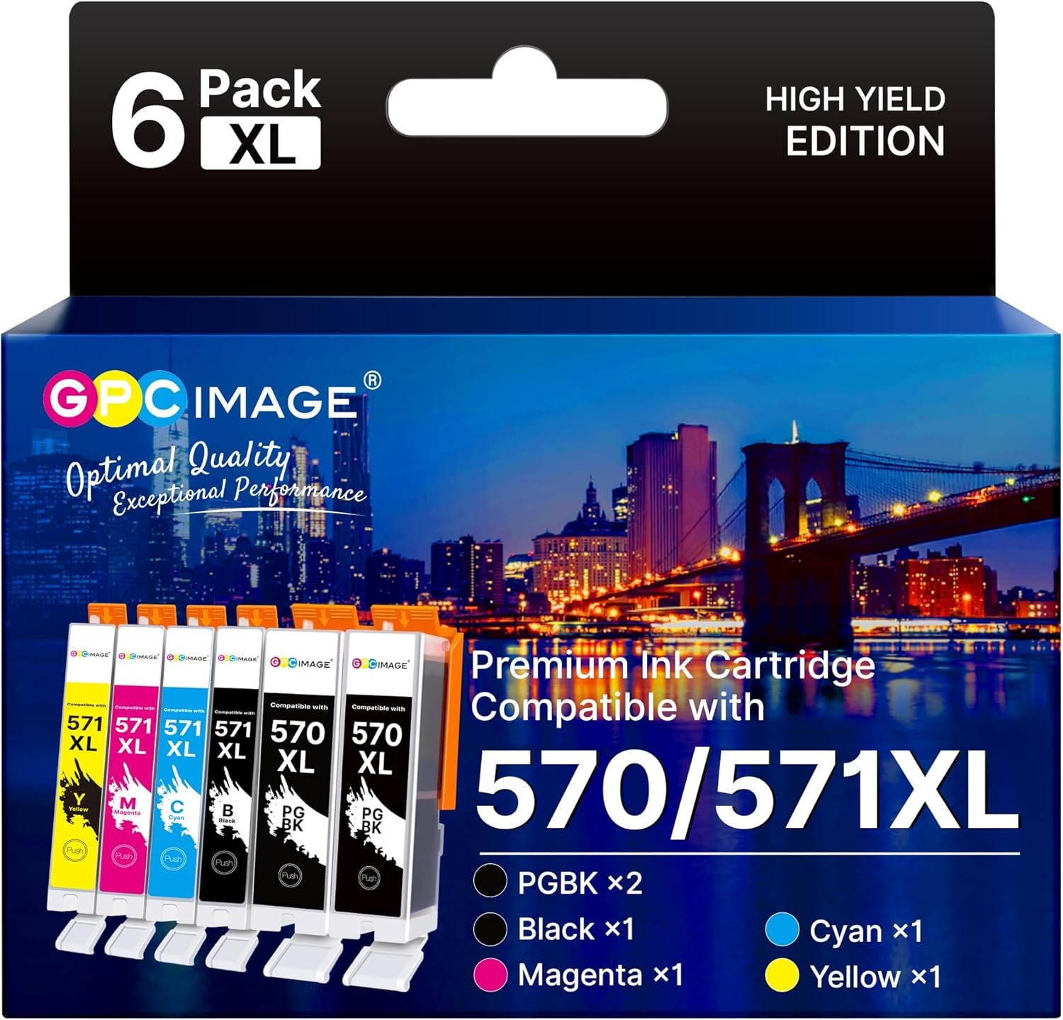 GPC Image PGI-570XL CLI-571XL Ink Cartridges Compatible for Canon 570 571 570XL 571XL PGI-570XL CLI-571XL for PIXMA MG5700 MG5750 MG5751 MG6850 MG6851 TS5050 TS5051 TS6050 (PGBK/B/C/M/Y, 6 Pack)