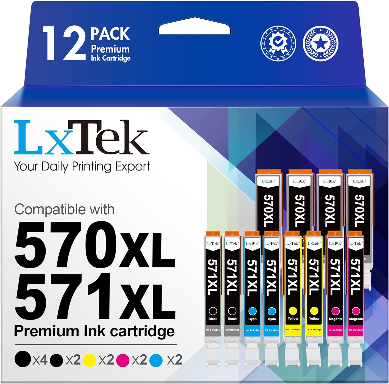 LxTek 570XL Compatible Ink Cartridge Replacement for Canon PGI-570 CLI-571 570XL 571XL for Canon PIXMA TS5050 MG5750 TS5051 MG6851 MG6850 MG5700 MG5751 MG5753 MG6852 (Yellow Black Magenta Cyan,12Pack)
