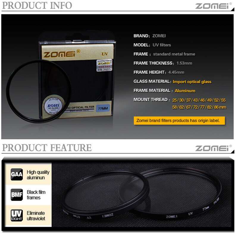 Zomei 72mm UV Ultra-Violet Filter Lens protector For Nikon Canon Sony Camera