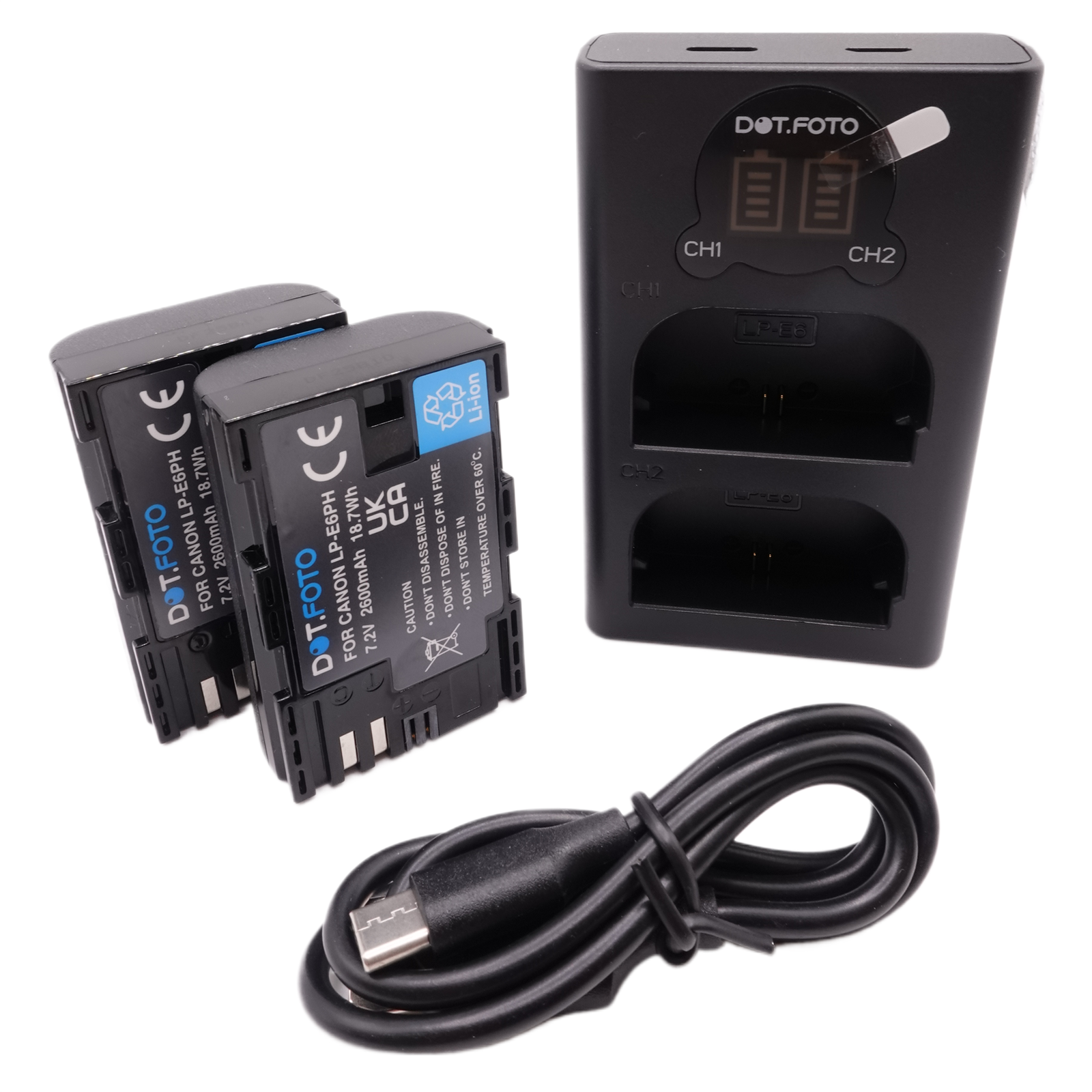 2x LP-E6P 2600mAh Battery & LCD Dual Charger for Canon (max discharge rate 6.0A)