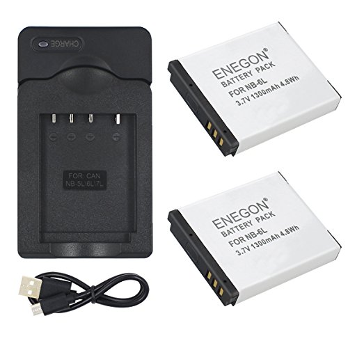 ENEGON 2-Pack NB-6L Replacement Battery and Charger Kit for Canon NB-6L, NB-6LH, CB-2LY and Canon PowerShot SX510 HS, SX500 IS, SX710 HS, SX520 HS, SX530 HS, SX700 HS, SX280 HS, SX260 HS, SX170 IS