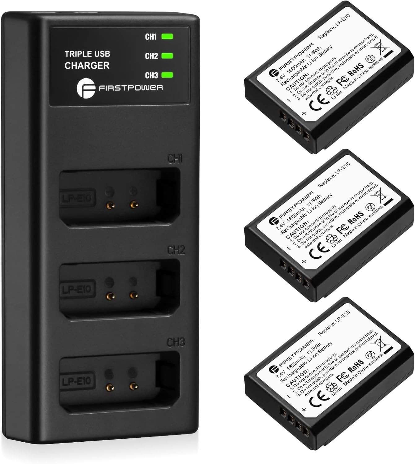 Firstpower LP-E10 Battery 3-Pack and Triple Slot Charger Compatible with Canon E
