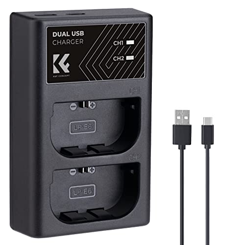 K&F CONCEPT LP-E6/LP-E6N/LP-E6NH Dual Slot Fast Camera Battery Charger, Micro USB/Type-C Charging for Dual Battery for Canon EOS R5/R6, EOS R, EOS 5D Mark IV, 5D Mark III USB Cable Battery Charger