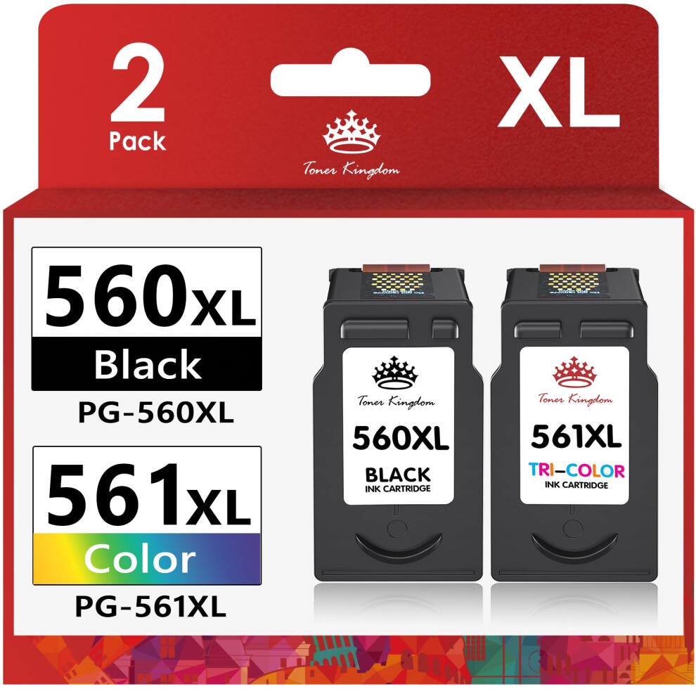 Toner Kingdom 560 561 XL Ink Cartridges Replacement for Canon 560 561 Ink Cartridges PG-560XL CL-561XL for Canon Pixma TS5350 TS7450 TS5351 TS7451