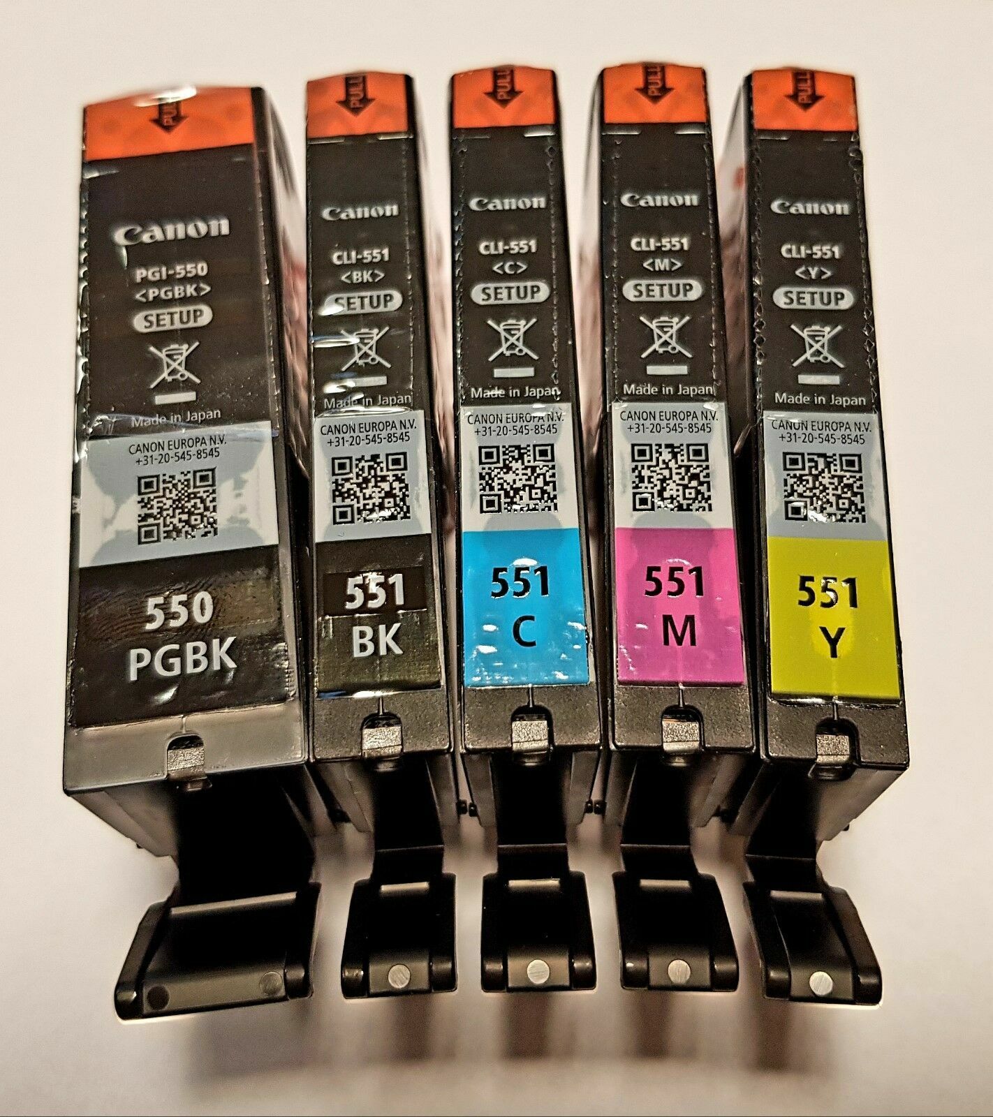 5 Genuine Canon PG550/pgi550 + CLI551 BK C M Y original inks MG6350 MG6450