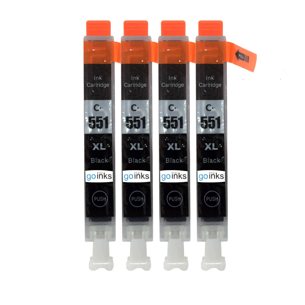 Compatible 4 Go Inks Black Ink Cartridges to replace Canon CLI-551Bk / non-OEM for PIXMA Printers