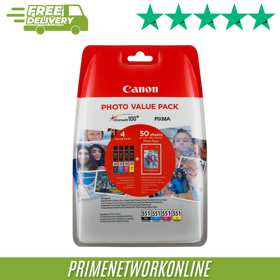 Canon 6508B006 - CLI-551 BK/C/M/Y Ink Cartridge + Photo Paper Value Pack Genuine